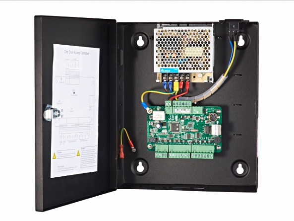Controlul de retea Hikvision DS-K2801 ACS este proiectat pentru a controla o usa, inclusiv de la distanta.
