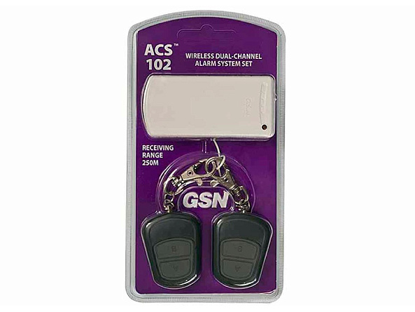 Беспроводной двухканальный комплект тревожной сигнализаций ACS-102, представляющий собой многоцелевой приёмник с ручными кнопочными передатчиками, разработан для использования в качестве персональной ТРЕВОЖНОЙ КНОПКИ в системах охранной сигнализации, включения/отключения данных систем, а так же для дистанционного управления любым электронным оборудованием.