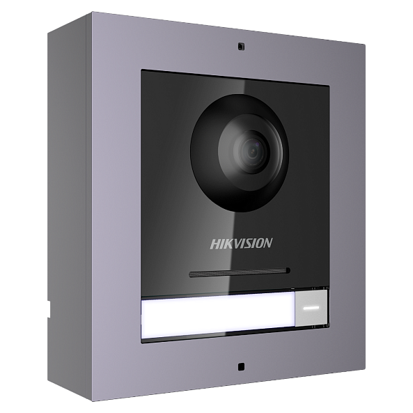 Модуль Hikvision DS-KD8003-IME1/Surface относится к серии сборных вызывных панелей серии KD8 Pro и представляет собой 1-абонентный видеокоммуникатор с 2 Мп (1920×1080) камерой (объектив Fisheye, угол обзора по горизонтали — 180°, вертикали — 96°, кодек H.264) с ИК-подсветкой.