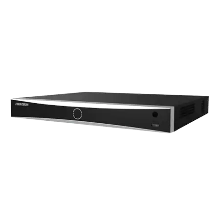 Выходы: 4K HDMI (3840×2160), VGA (1920×1080). Вентиляторы с автоматической регулировкой скорости обеспечивают тихую работу. Компрессия видео H.265+/H.265/H.264+/H.264. Синхронный playback. Интерфейсы: 2×USB 2.0, 1×Gigabit LAN. Audio IN/OUT: 1/1, Alarm IN/OUT: 4/1. 2 HDD SATA до 16 TB. Габариты: 384×317×52мм. Питание 12В, 3.33 A. Температурный диапазон: от -10°С до +55°С.