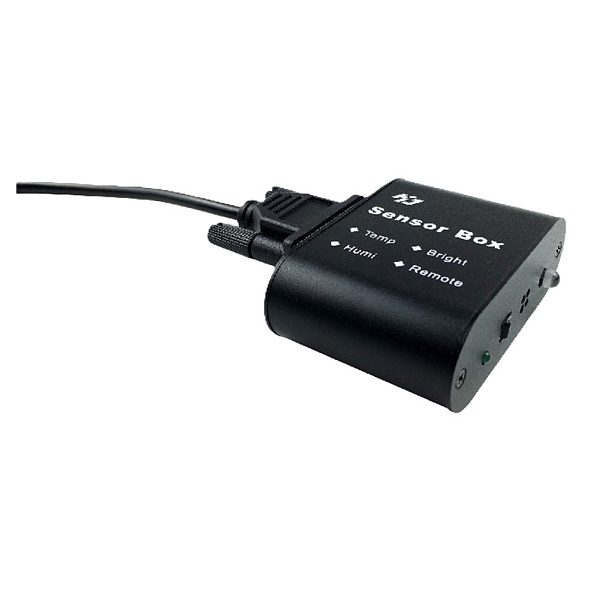 Многофункциональный датчик, который объединяет в себе датчики температуры, влажности, освещенности и пульт дистанционного управления. Подключается к системе управления светодиодным дисплеем, на котором можно отображать температуру и влажность окружающей среды. Одновременно поддерживает автоматическую регулировку яркости в зависимости от изменения освещенности окружающей среды. С помощью пульта дистанционного управления можно приостанавливать и воспроизводить программу, а также переключать программы.