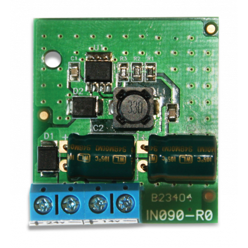 Понижение напряжения с 24В до 14В, идеально подходит для питания 12В устройств (наружные сирены, телефонные коммуникаторы от блока управления пожарной сигнализацией.